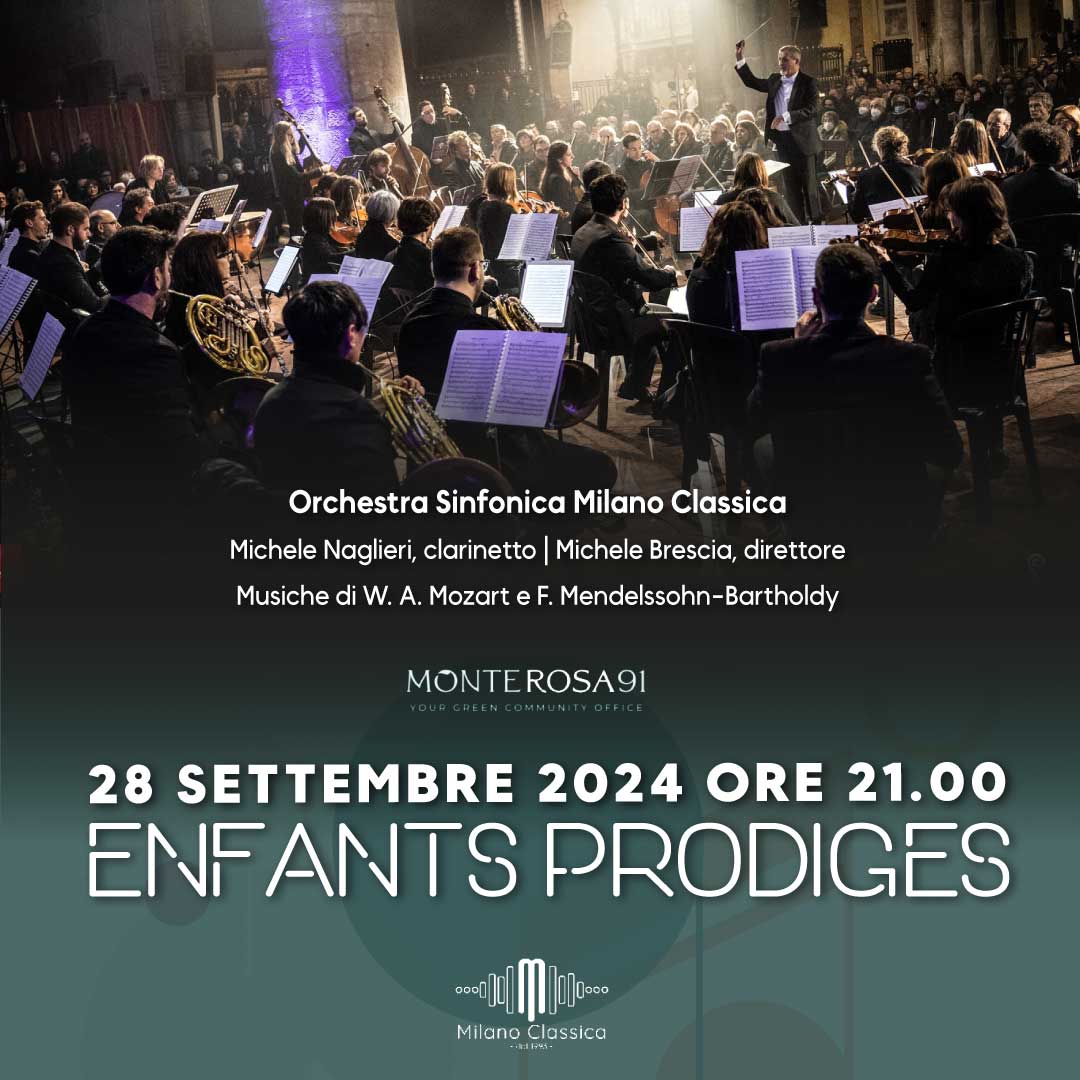 Il programma della stagione 2024/25 del Parco della Luce prende il via sabato 28 settembre alle ore 21:00 con “Enfants Prodiges”. L’Orchestra Milano Classica, eccezionalmente nella sua veste sinfonica diretta dal Maestro Michele Brescia, con il clarinetto solista Michele Naglieri, milanese, primo clarinetto dell’Orchestra del Teatro Petruzzelli di Bari, eseguirà due capolavori indiscussi della storia della musica: il Concerto per clarinetto e orchestra di W.A. Mozart e la Sinfonia n. 4 “Italiana” di F. Mendelssohn.